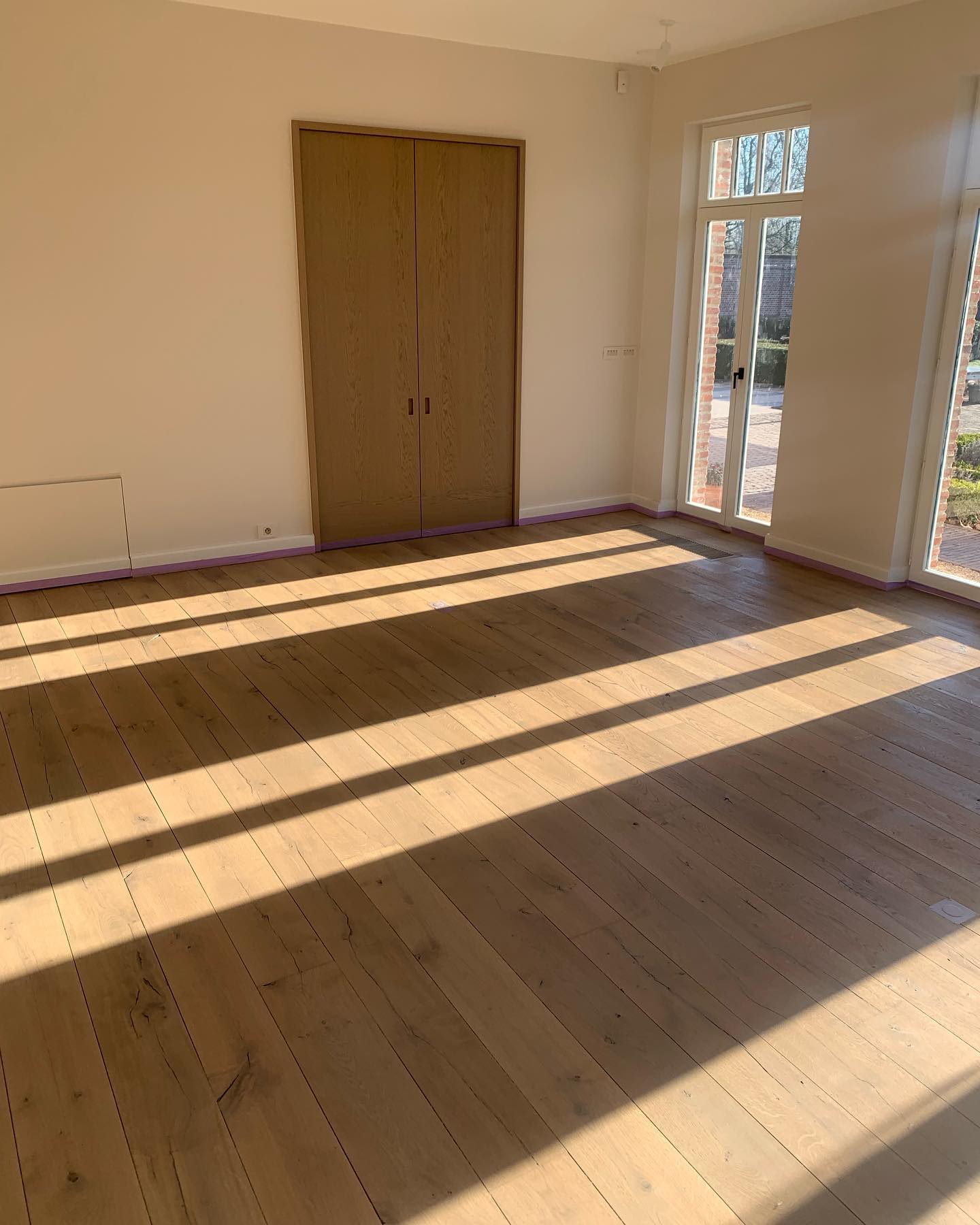 Eventuele scheuren, gaten of beschadigde planken worden gerepareerd met een bijpassende houtvuller. Dit zorgt ervoor dat de vloer er na de renovatie weer als nieuw uitziet.